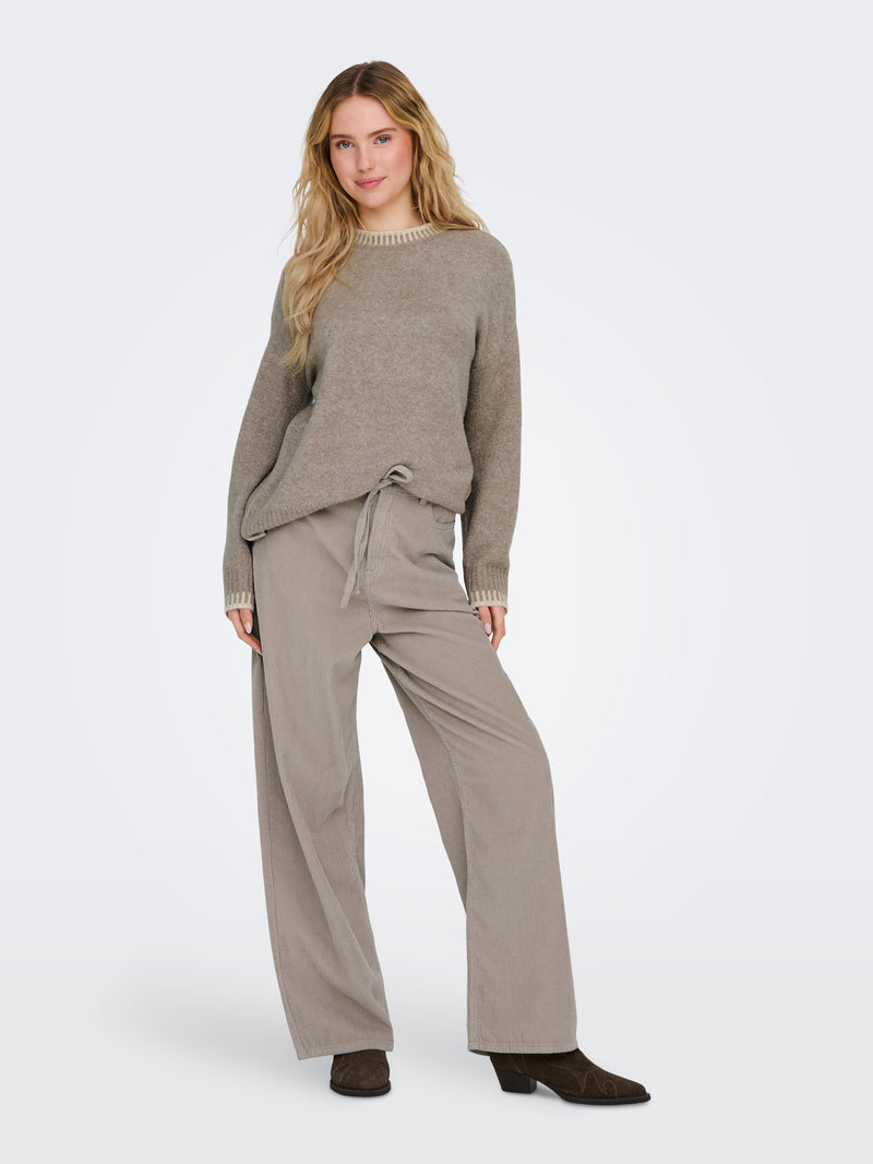 Trousers: Loose Leg Cord Elasticated Waist w Belt L32" BLEECKER- Beige - ONLY