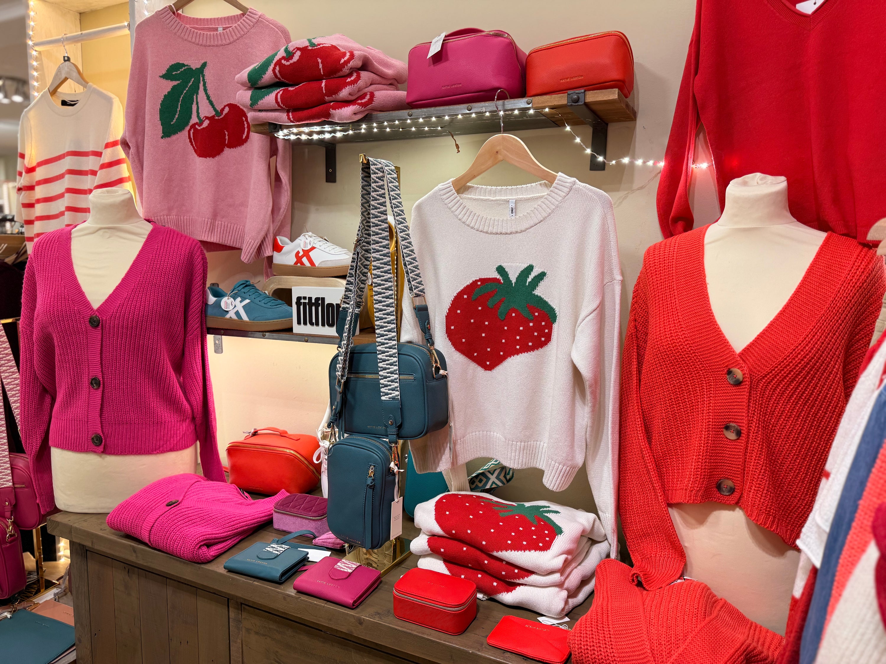 Bobble Hat: Knit Fairisle Recycled Viscose Blend - Wine & Pink - POM