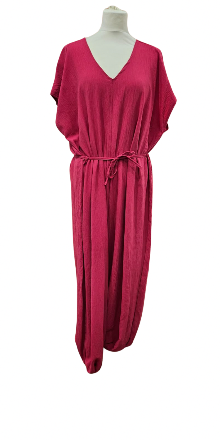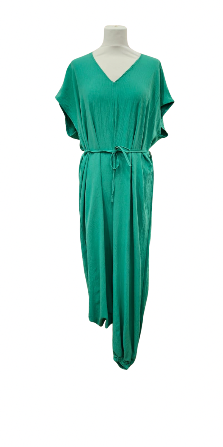Jumpsuit: Cap Sleeve V Neck Gathered Ankle -Block Colour - One Size