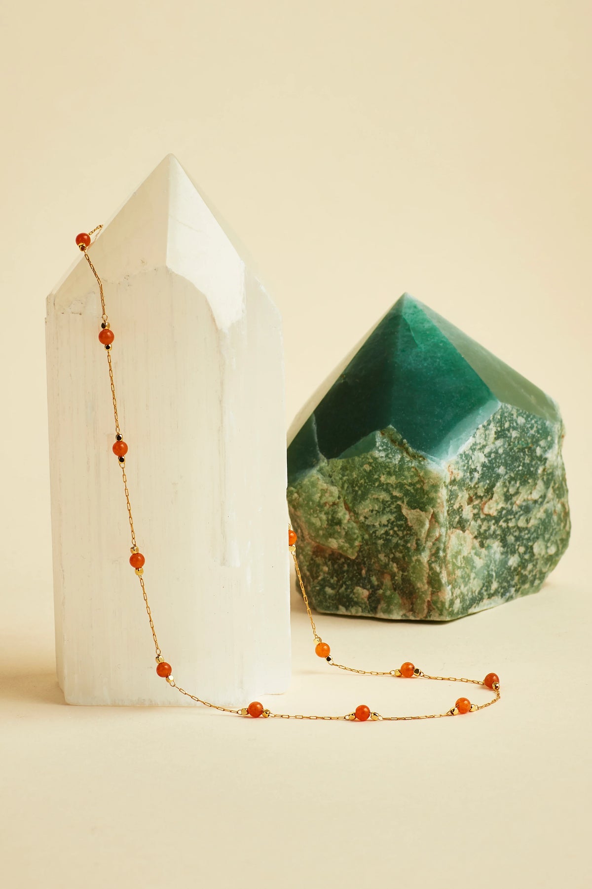 Necklace: Wellness Carnelian Beaded Chain COURAGE - Gold Plated Estella Bartlett