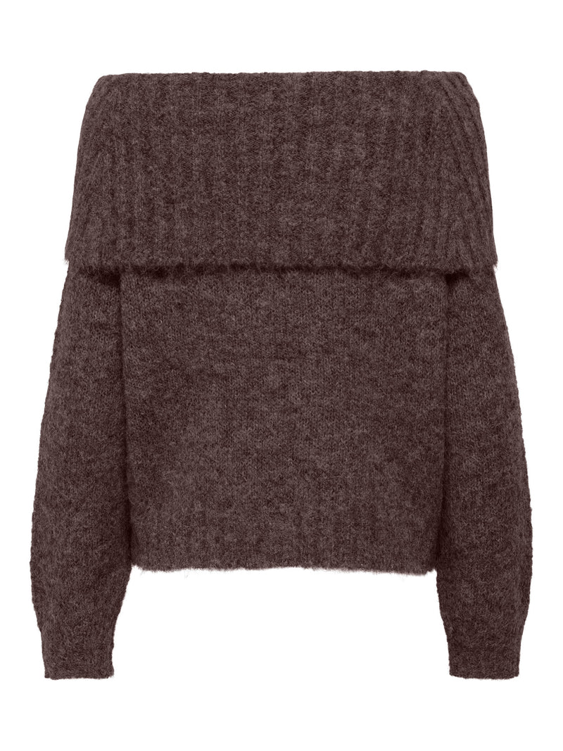 Jumper: Knit Off Shoulder Long Sleeve SHINE - Chocolate Brown