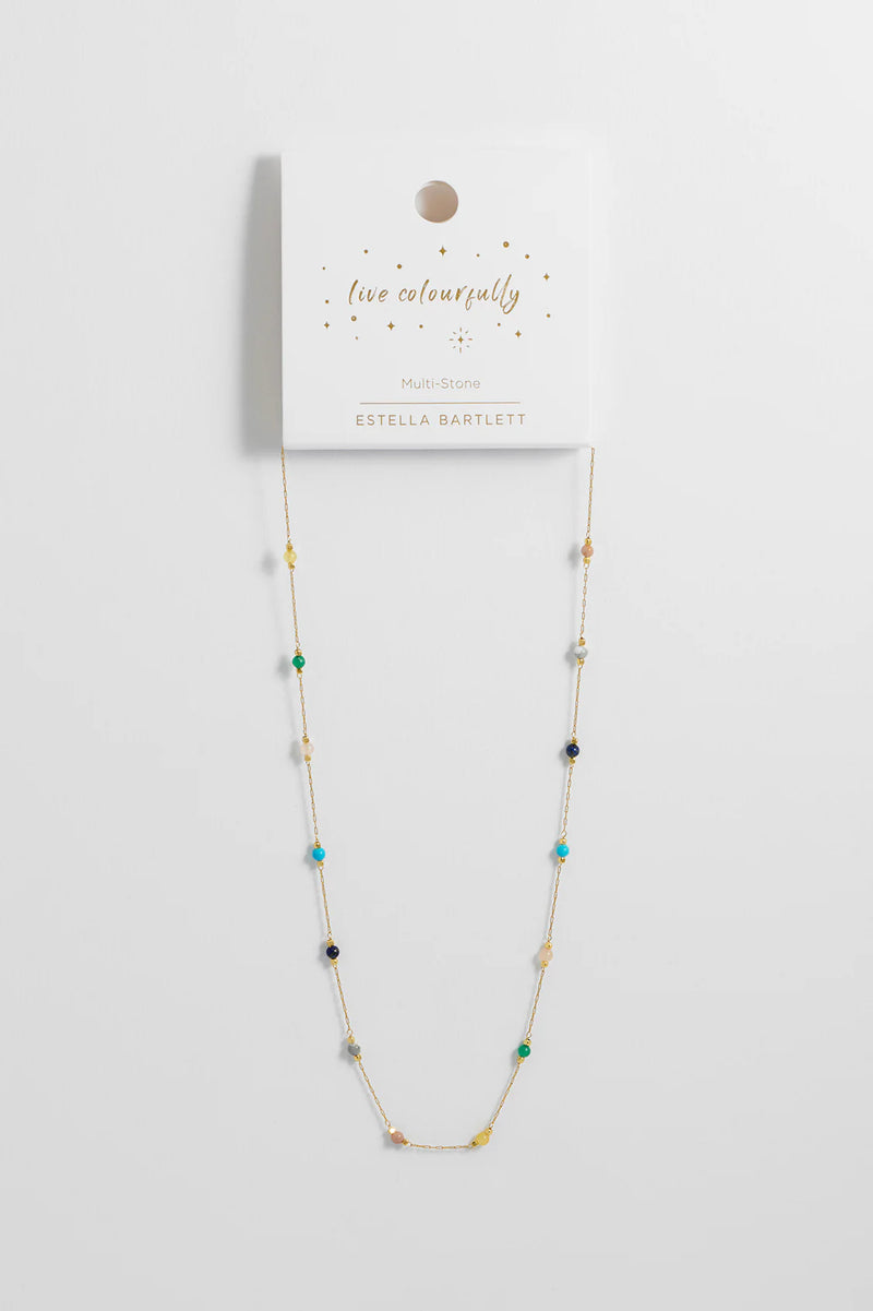 Necklace: Short Chain Wellness Mixed Gemstones Beaded Paperlink - LIVE COLOURFULLY - Gold Plated Estella Bartlett