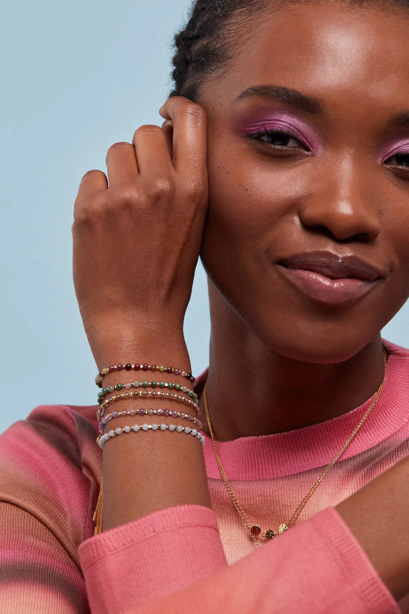 Bracelet: Lariat Amelia Mixed stone Green & Pink LOVEBeads - Gold Plated - Estella Bartlett