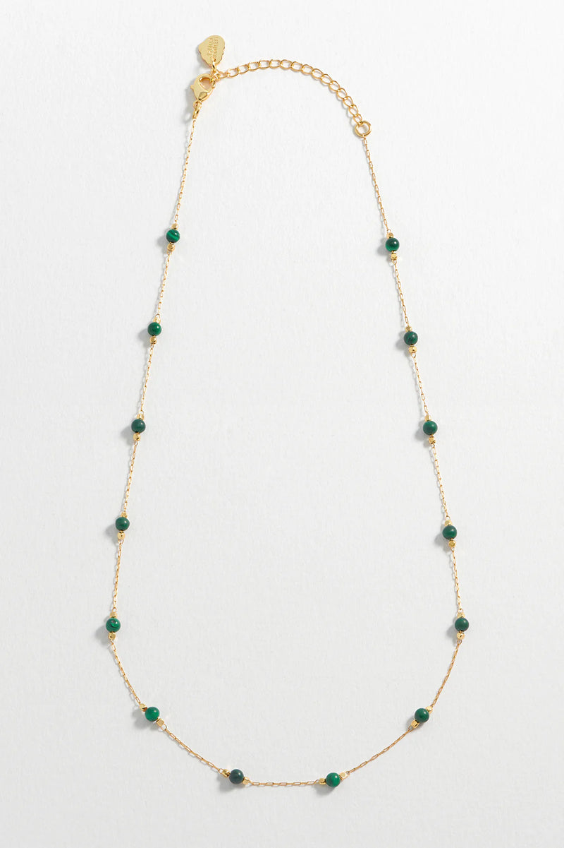 Necklace: Wellness Malachite Beaded Paperlink Chain POSITIVITY - Gold Plated Estella Bartlett