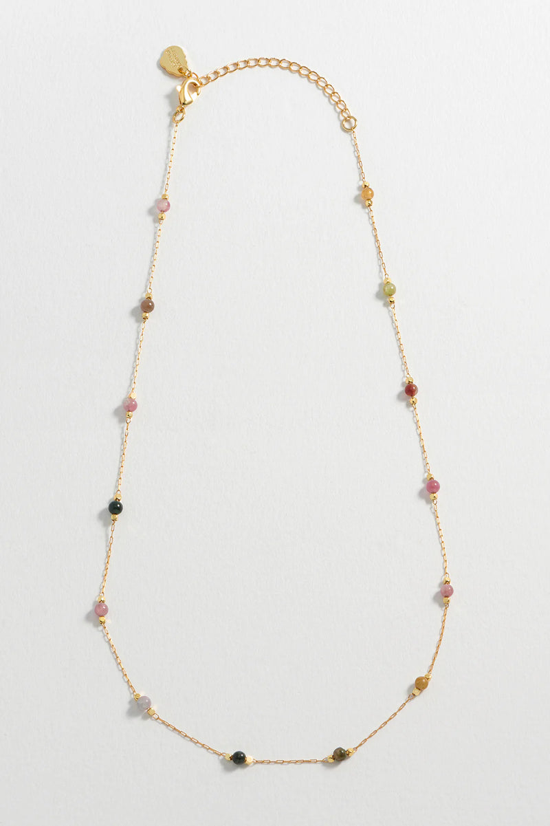 Necklace: Wellness Tourmaline Beaded Paperlink Chain STRENGTH - Gold Plated Estella Bartlett