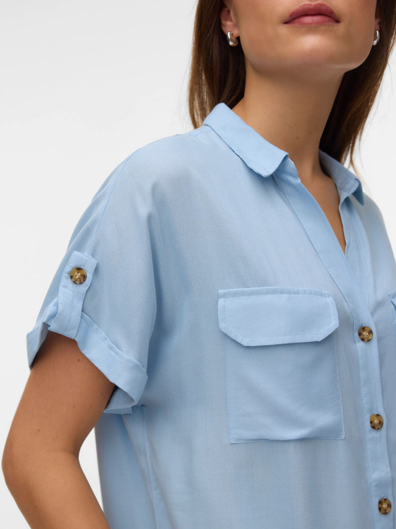 Shirt: Livaeco Short Sleeve Button Cuff BUMPY - Cashmere Blue - Vero Moda