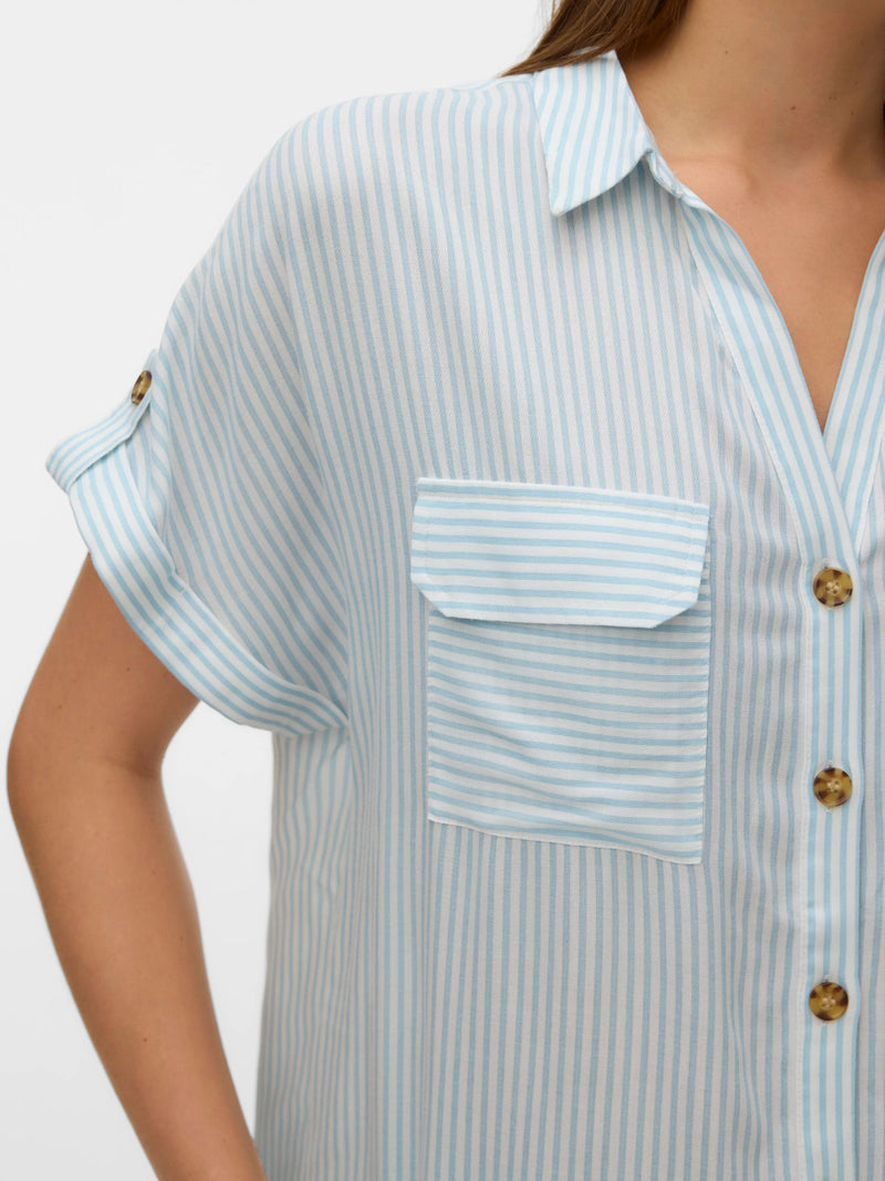 Shirt: Livaeco Stripe Short Sleeve Button Cuff BUMPY - Snow White Cashmere blue - Vero Moda