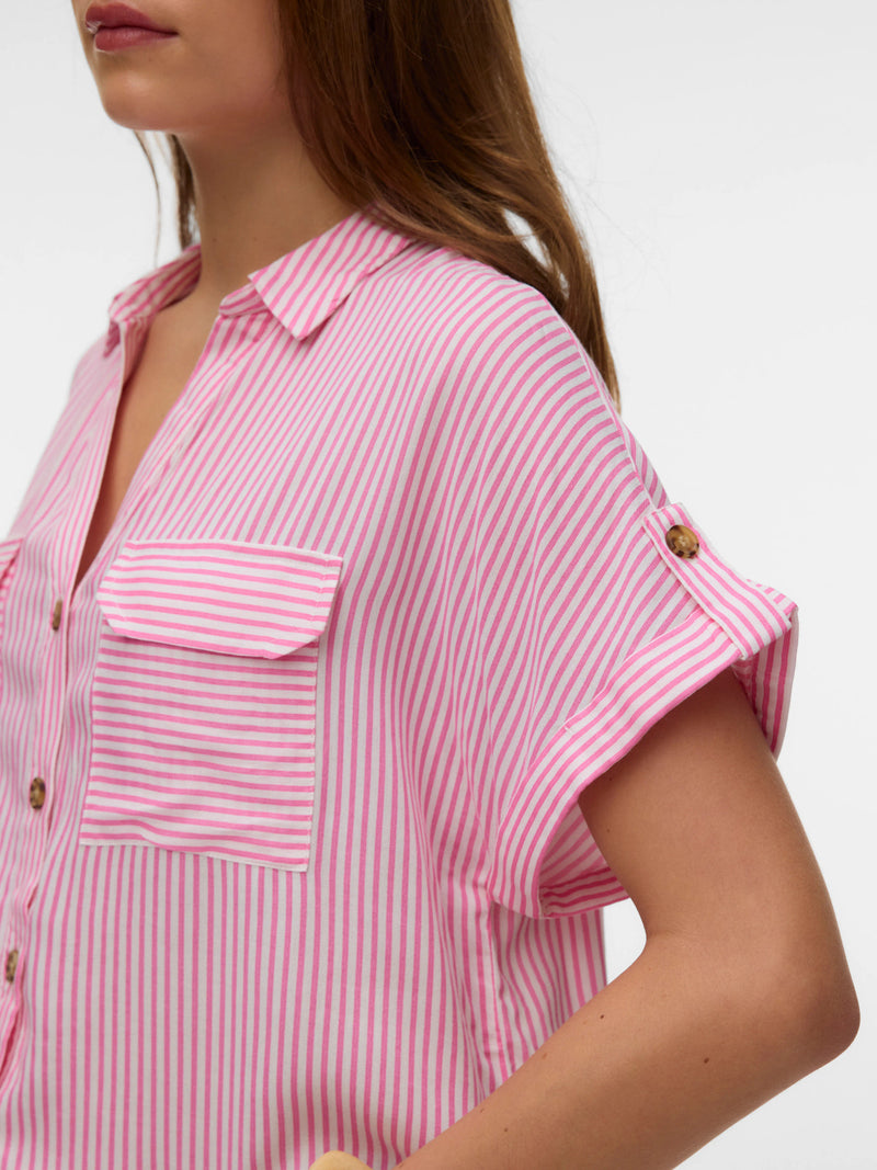 Shirt: Livaeco Stripe Short Sleeve Button Cuff BUMPY - Pink Cosmos - Vero Moda
