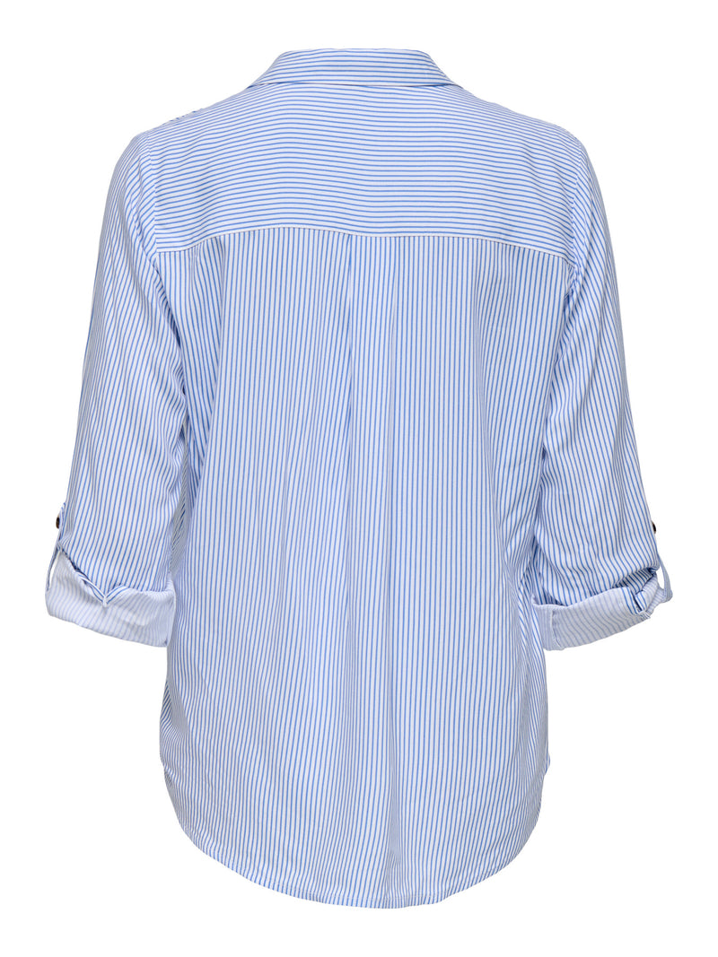 Shirt: Viscose Stripe Long Sleeve Button Cuff YASMIN - Peacoat Blue & WHITE - ONLY