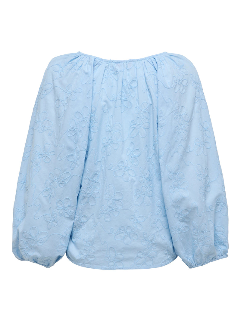 Blouse: Cotton Embriodered 3/4 Sleeve V Neck ZION - Soft ChambrayBlue - ONLY