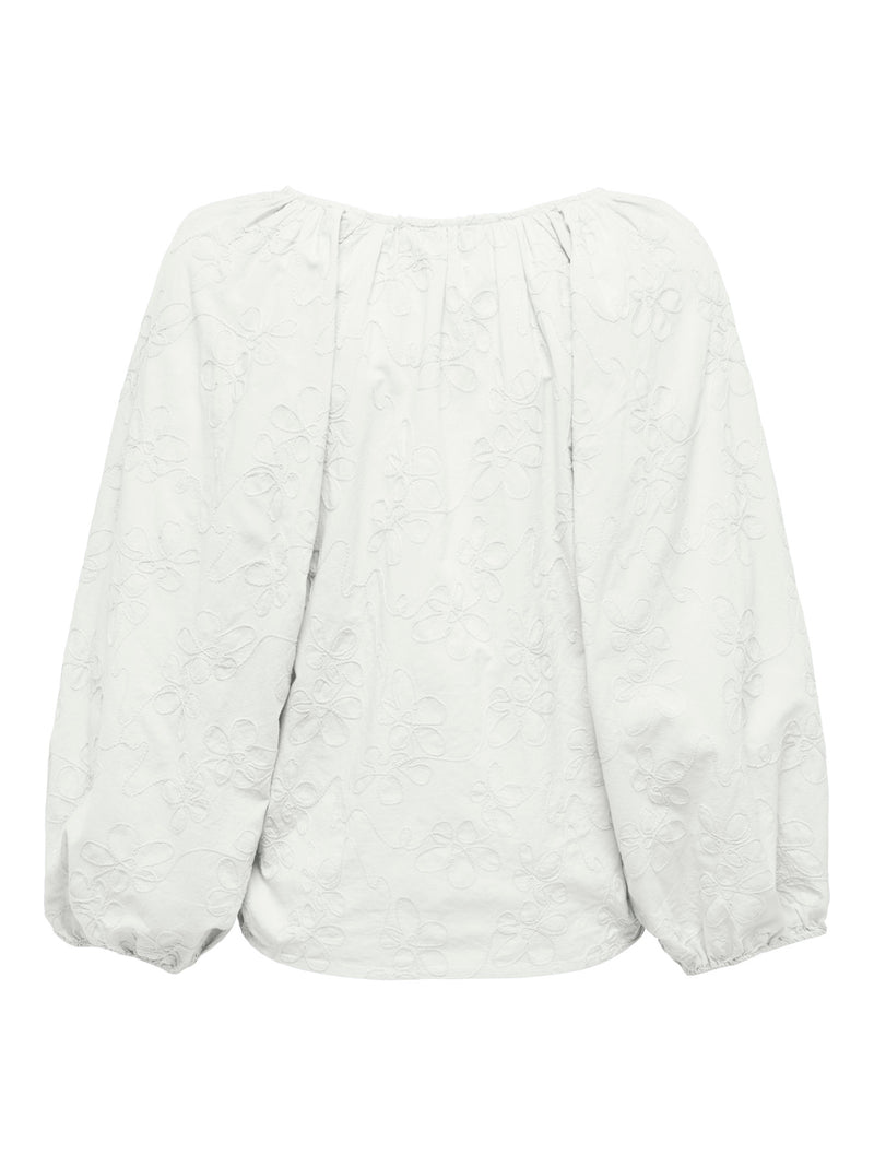 Blouse: Cotton Embriodered 3/4 Sleeve V Neck ZION - White Cloud Dancer - ONLY