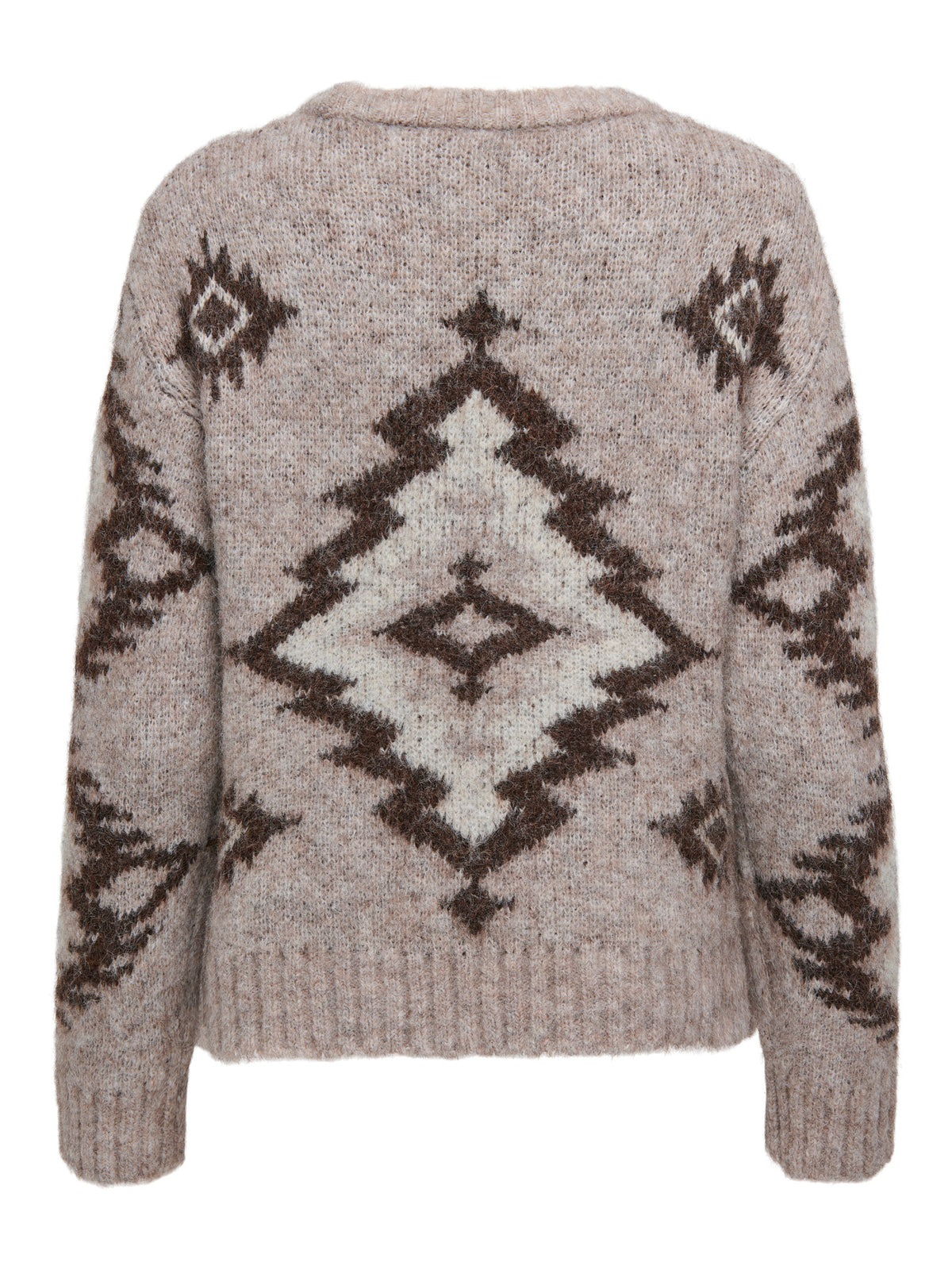 Jumper: Knit Round Neck Long Sleeve Aztec AZU - Beige & Brown