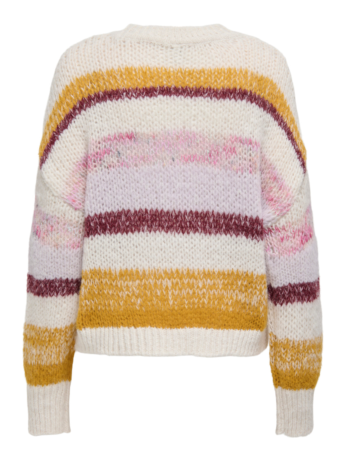 Jumper: Knit Round Neck Long Sleeve Stripe ALYSSA - Pink & Blue - Stay warm and cosy with soft knitted styles, perfect for any occasion and season. - Product Type : Knitted pullover - Neck : Round Neck - Sleeve : Long sleeves - Fit : Regular Fit Made From: Recycled Polyester: 57;Polyester: 43