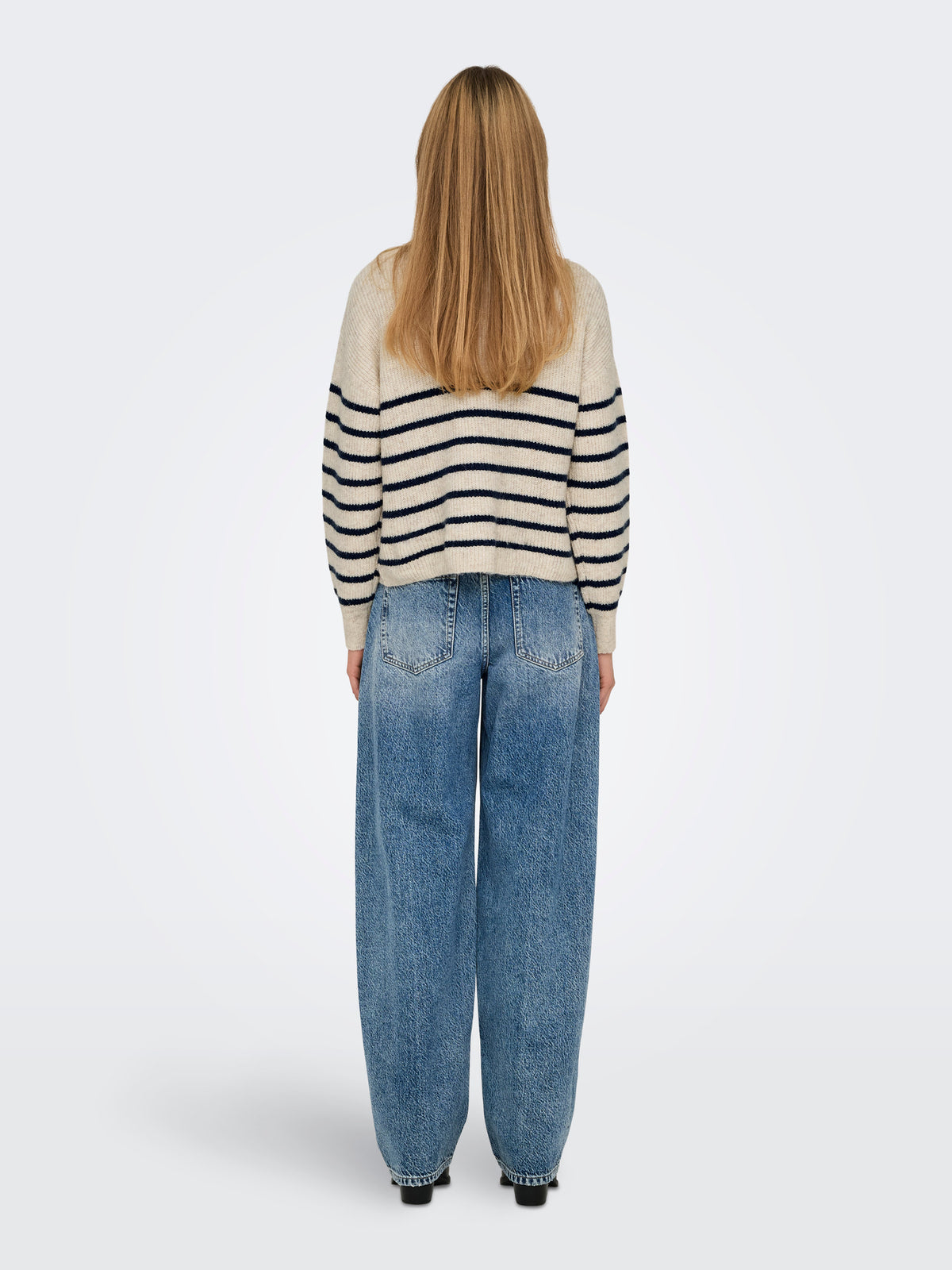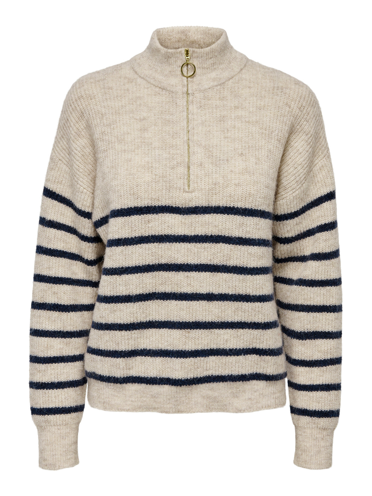 Jumper: Knit Wool Mix High Neck Long Sleeve Gold Zip Ribbed TOKYO - Beige & Blue - Look your best for school, work, and everyday activities in cool styles that are easy to match with your wardrobe favourites. - Product Type : Knitted pullover - Neck : High neck - Sleeve : Long sleeves - Sleeves : Dropped shoulders - Cuffs : High cuffs - Closing : Half zip fastening - Fit : Regular Fit Made From: Recycled Polyester: 50;Polyester: 29;Acrylic: 13;Wool: 5;Elastane: 3