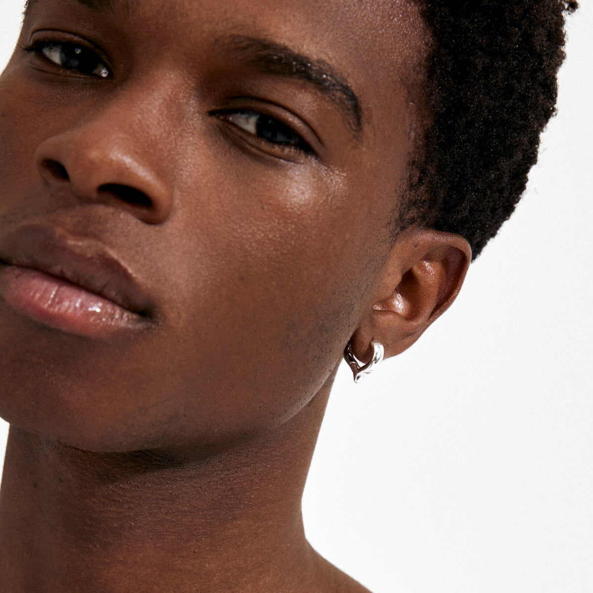 Love on loop! Pilgrim's IRIS earrings bring you silver-plated hoops with a twist of love – from the side, they reveal a heart-shaped design that mixes soft vibes and confident style in one effortless package. The easy snap lock makes them perfect for everyday wear, while the clean look leaves plenty of room for you to make them your own. Wear them as a symbol of love – for yourself, springtime, or just life itself. Pair with a flowy dress, messy bun and sun-kissed cheeks for those ultimate love season feels. Crafted from 99% recycled materials, these are fashion choices that show care for our planet.
