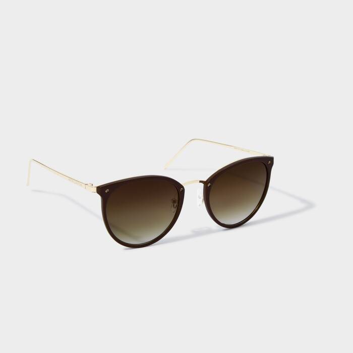 Sunglasses: Santorini Round Gold Arms UV Protection - Cacao Brown - Katie Loxton
