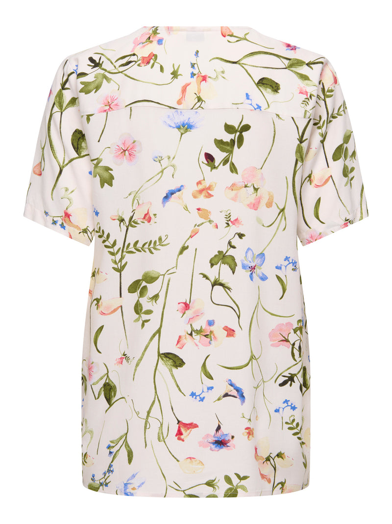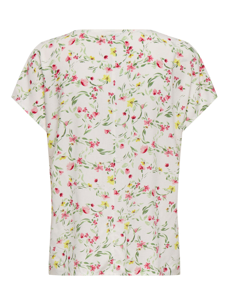 T-Shirt: V Neck Short Sleeve Garden Flower JDYSEZEN - White - JDY