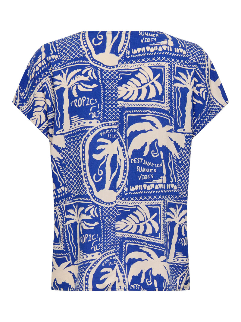 T-Shirt: V Neck Cap Sleeve Tapioca Palms JDYSTAR - Blue - JDY