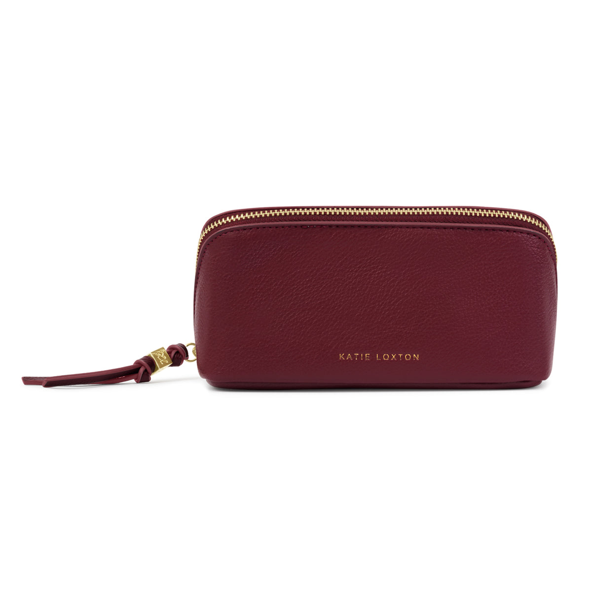 Cosmetic Bag: Soft Vegan Leather Small New Full Open w Fold Out Mirror - Cherry - Katie Loxton