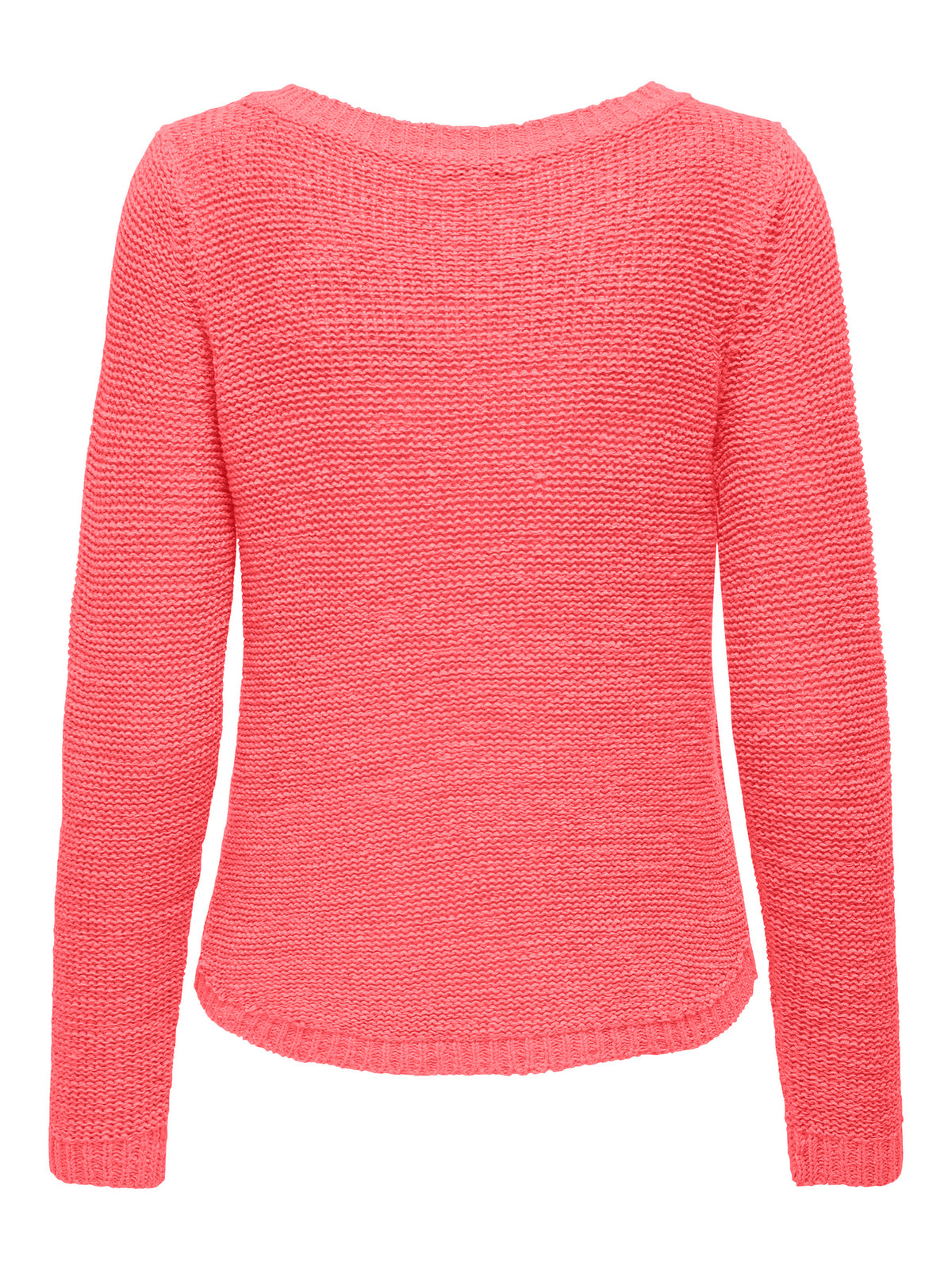 Jumper: Fine Knit Round Neck Long Sleeve Plain GEENA XO - Sugar Coral
