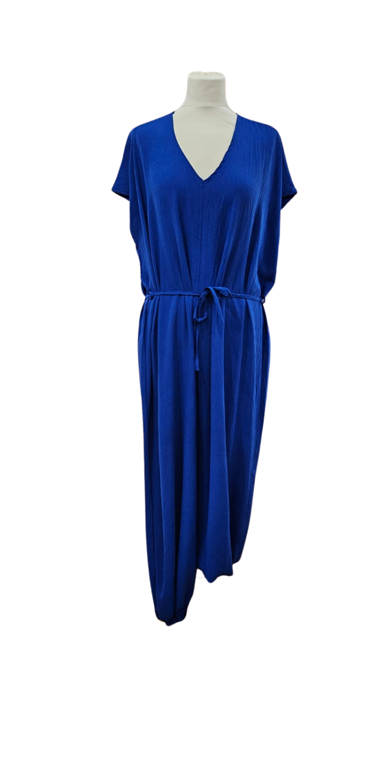 Jumpsuit: Cap Sleeve V Neck Gathered Ankle -Block Colour - One Size