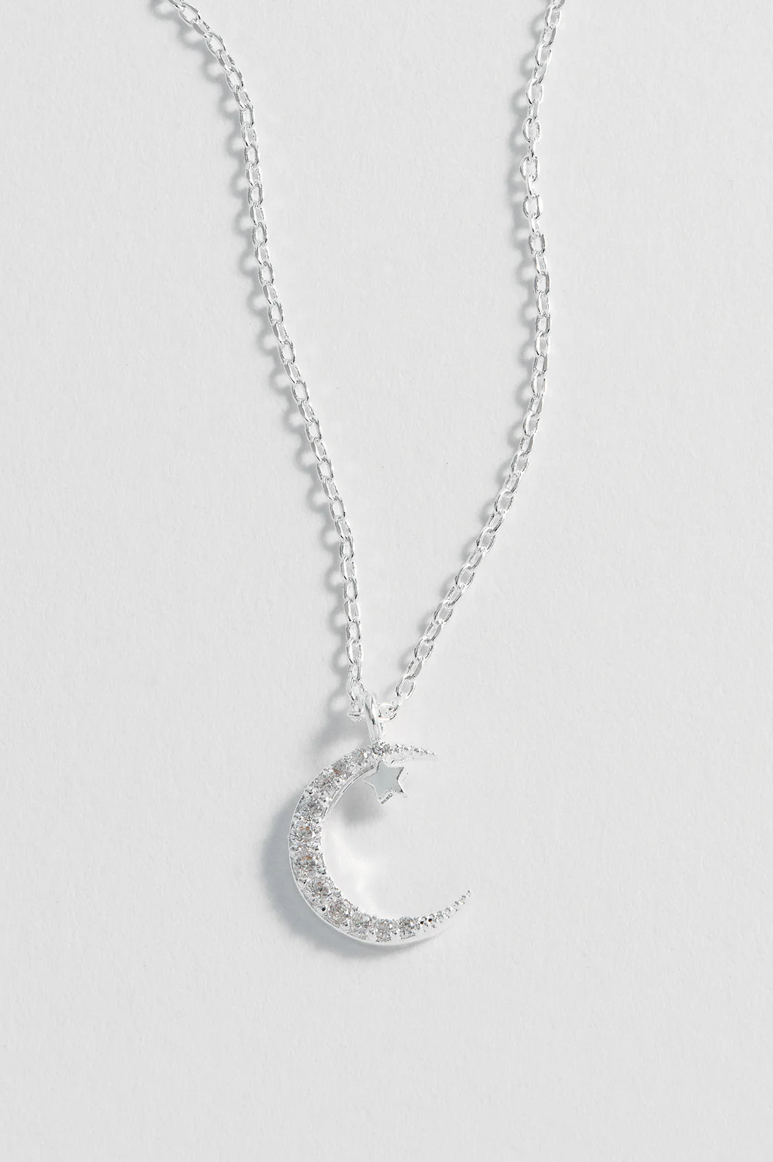 This stylish pendant necklace features a beautiful crystal adorned silver plated crescent moon with a mini star suspended from the top. Estella Bartlett necklaces are beautifully packaged in a presentation envelope making them the perfect gift to send to a loved one, or as a special treat for yourself. Details The chain measures 16-18 inches.