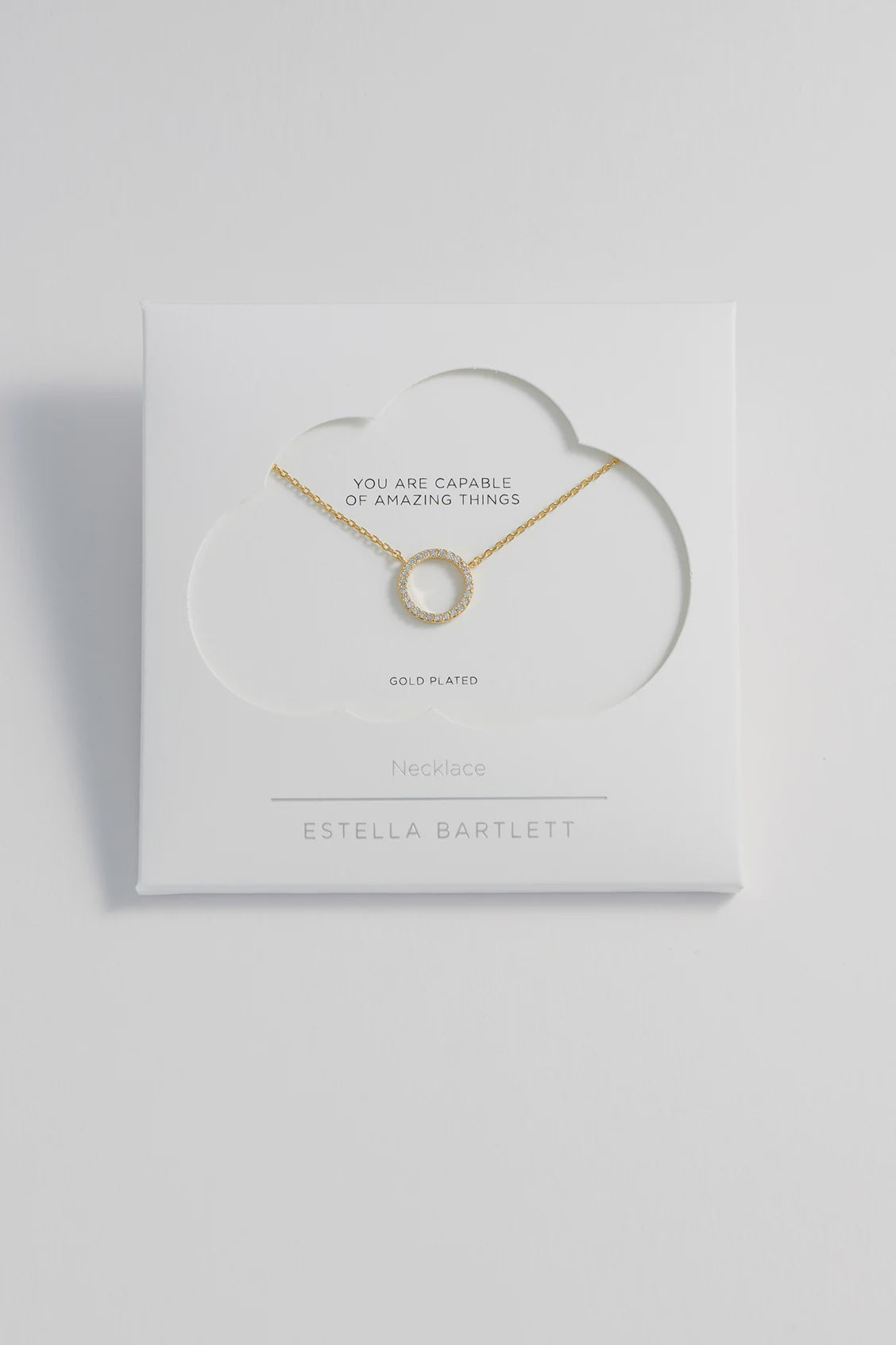 Necklace on Card: Pendant Large Circle YOU ARE CAPABLE OF AMAZING THINGS - Gold Plated - Estella Bartlett