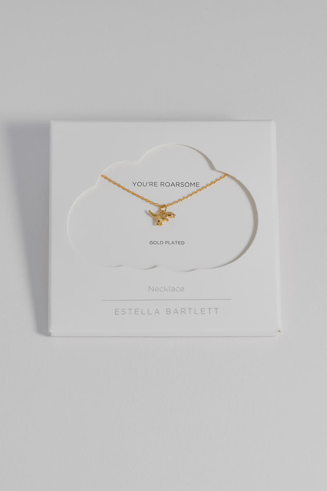Necklace on Card: Short - Dinosuar- YOU'RE ROARSOME - Gold Plated - Estella Bartlett