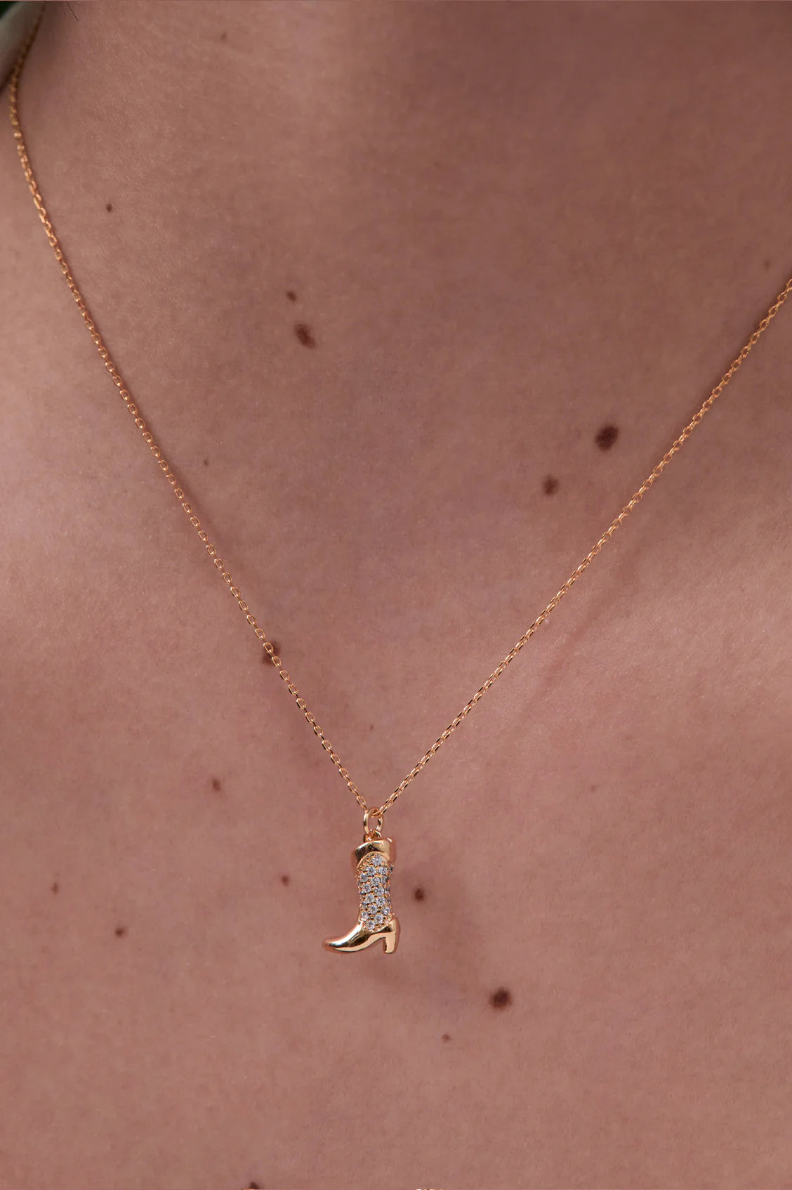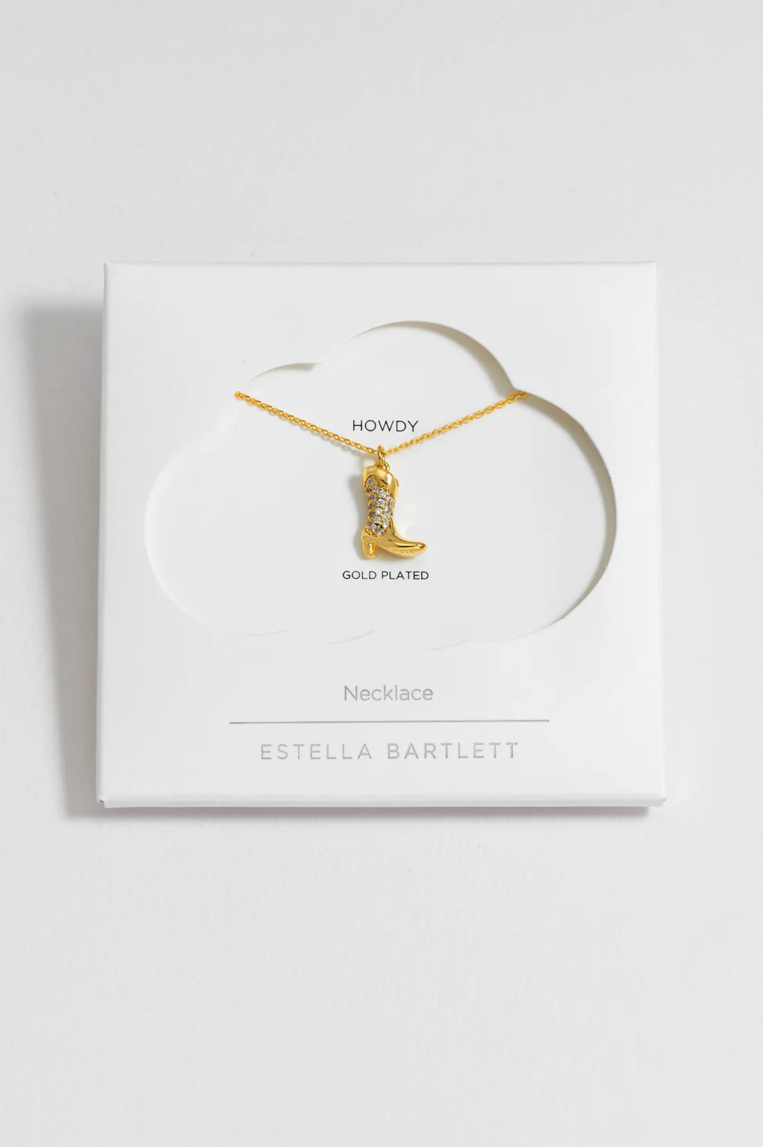 Necklace: Pendant Pave Cowboy Boot - Gold Plated Estella Bartlett